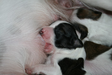Unser A-Wurf ist am Abend des 02.11.2014 auf die Welt gekommen. Die Geburt verlief problemlos. Obwohl es eine Premiere sowohl für Duschka als auch für uns war, konnte man erkennen, dass das „richtige“ Verhalten bei der Hündin in den Genen gespeichert ist. Die Handlungen werden instinktiv abgerufen.